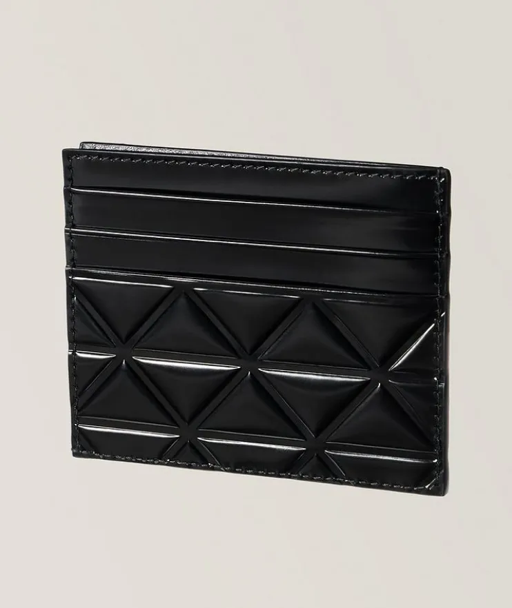 - This sophisticated and functional cardholder from Prada is a practical accessory for everyday use. Crafted from the brand’s calfskin leather, it’s equipped with multiple card slots and a sophisticated and eye-catching design. The compact cardholder will easily slip into your back pocket for carrying convenience.