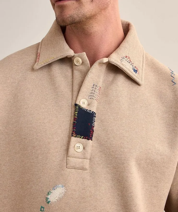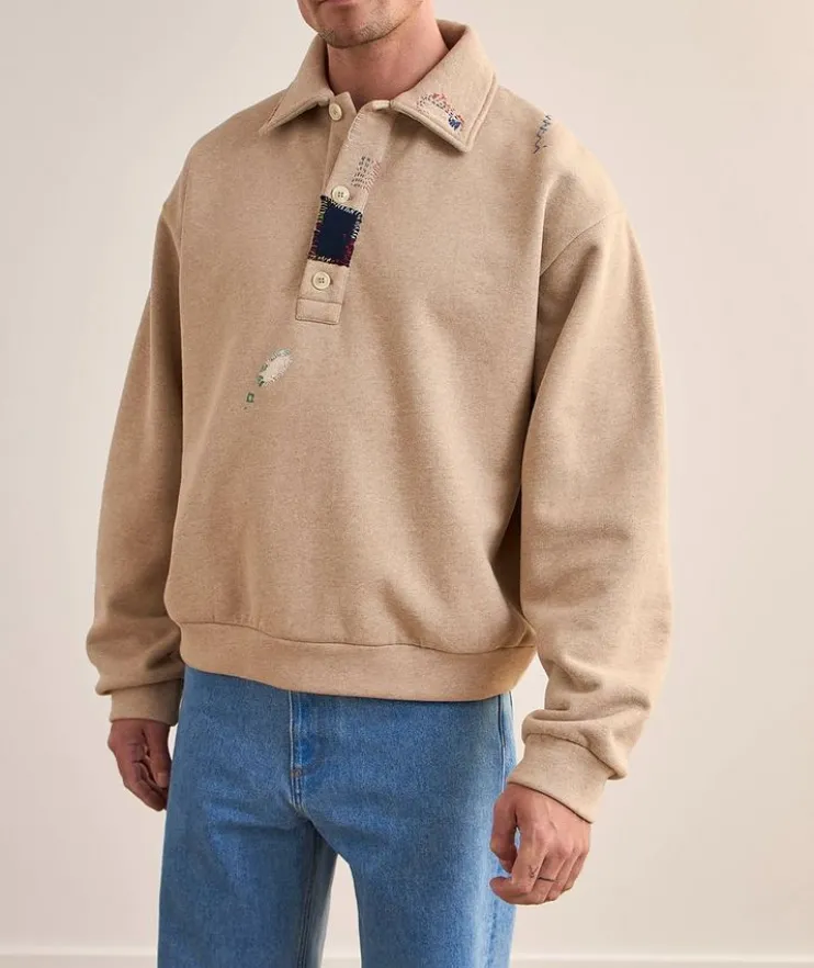 - This sweatshirt is elevated with a polo collar and colourful embroidered patches, including a logo detail at the shoulder. Cut in a boxy fit from a cotton-blend jersey, this cozy piece completes any off-duty look.