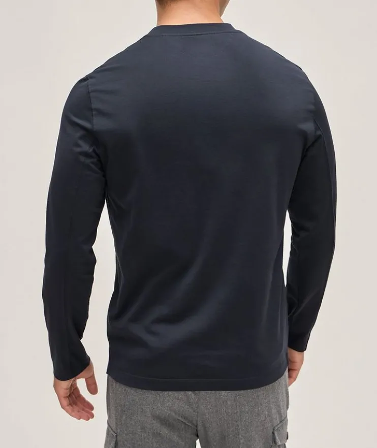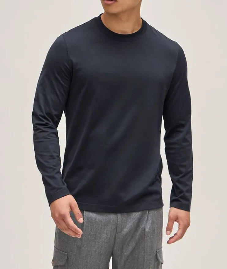 - The refined qualities of Brunello Cucinelli materials enrich this long sleeve t-shirt, an essential menswear piece. Lightweight cotton jersey offers a soft, smooth, and lightweight texture that is easy to wear. A testament to Italian craftsmanship and everyday luxury, this versatile piece offers comfort and understated elegance.