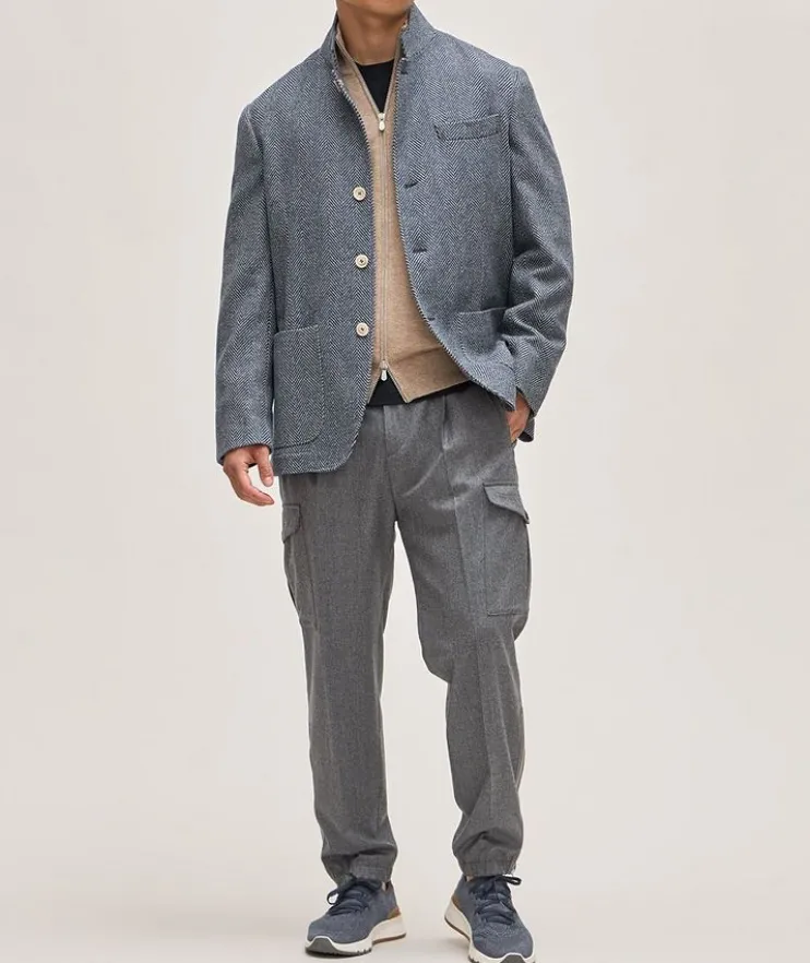 - For the man who appreciates versatility, this t-shirt’s soft to the touch jersey cotton is undeniably luxurious. For a casual day in the office, wear it on it’s own or pair it under a sport jacket to create a sense of modernist. If you’re up for a styling game, style it under a sport shirt and vest finished with corduroy pants for a very Brunello Cucinelli look.
