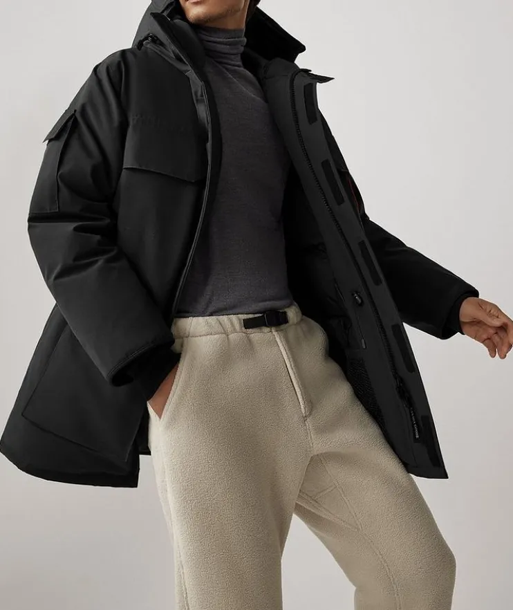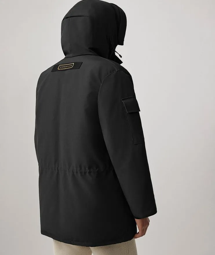 - Canada Goose’s Expedition Parka is crafted in Canada with arctic temperatures in mind, capable of withstanding climates down to -30°C & below. It’s equipped with genuine down fill, a fleece-lined chin guard, multiple pockets and a hood to combat the cold with ease. Whether you’re trekking through the snowy city or an icy mountainside, this outerwear piece is made for you.