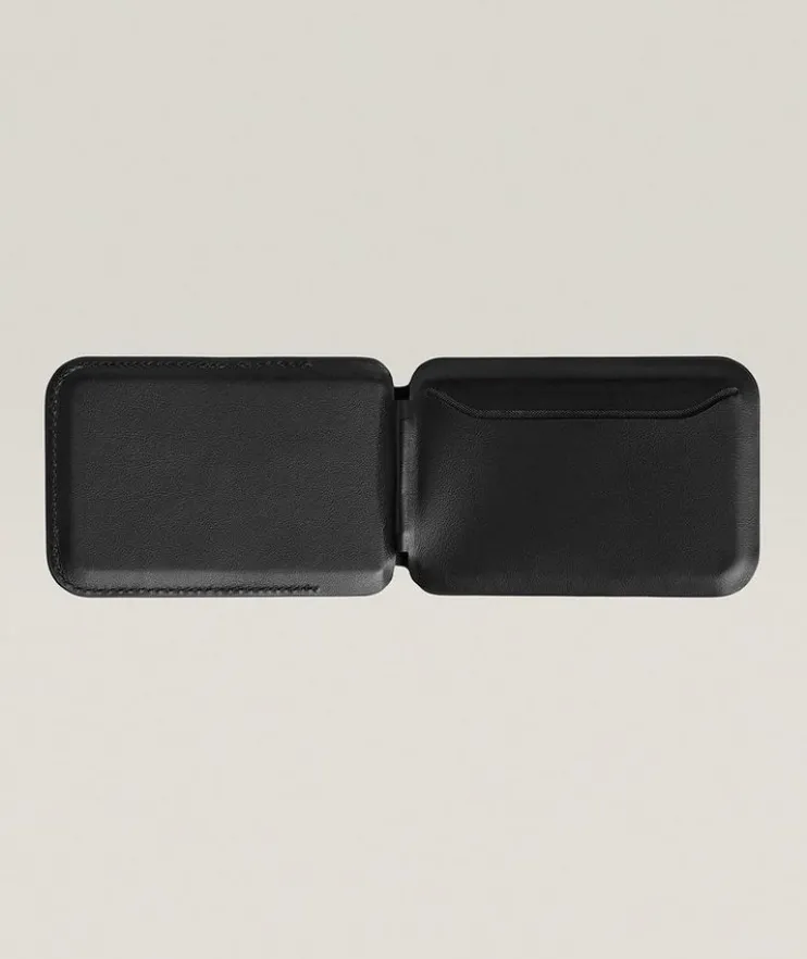 - Crafted from embossed leather, this minimalist accessory with MagSafe® is designed to hold three cards and attach easily to an Apple iPhone® cover.