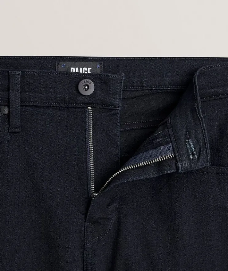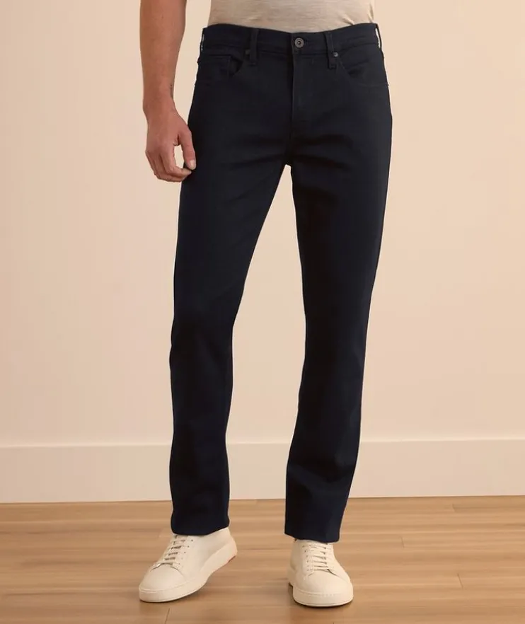 - Paige’s innovative Transcend fiber technology provides super soft construction, a comfortable fit and unyielding support. Their Federal jeans are a true slim fit with a straight cut, ideal for everyday wear. Try the dark wash pair with leather sneakers and an essential tee for a look with contemporary appeal.