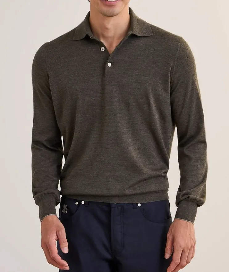 - Fashioned in refined, supple wool and cashmere blend for a lightweight feel, this elevated polo features a fine gauge knit texture. The contrast colour edges of the sleeves complete the design of the garment with a sophisticated touch.