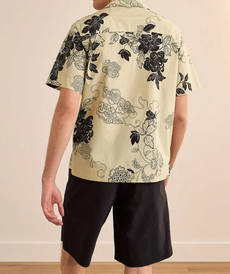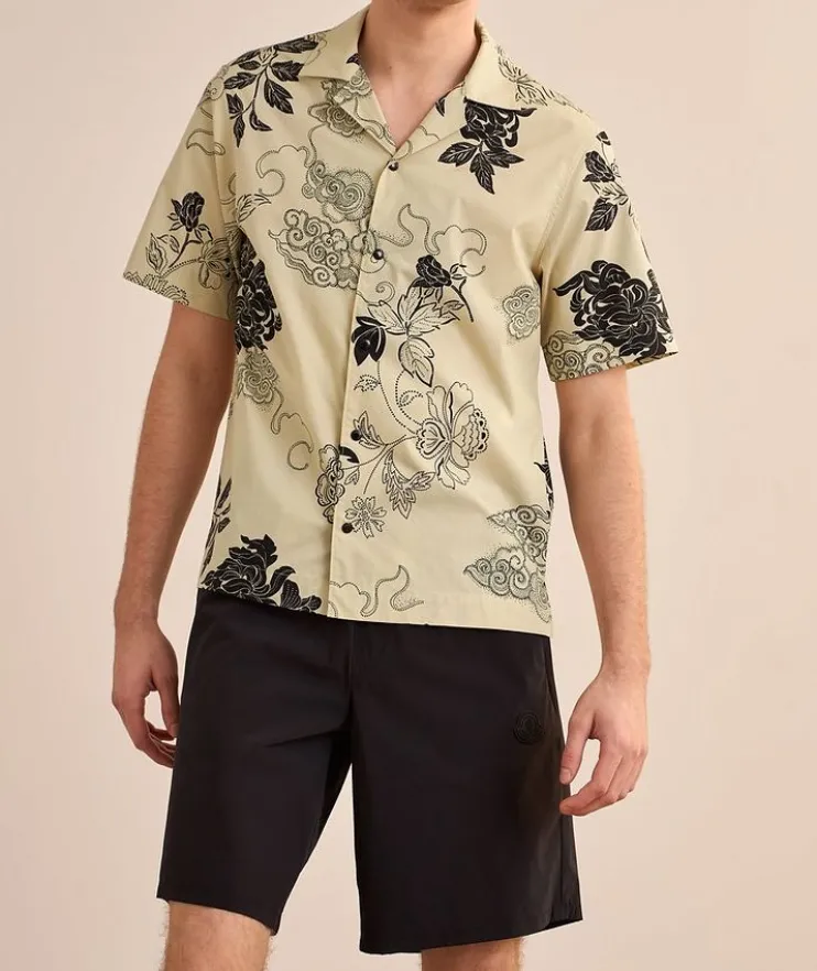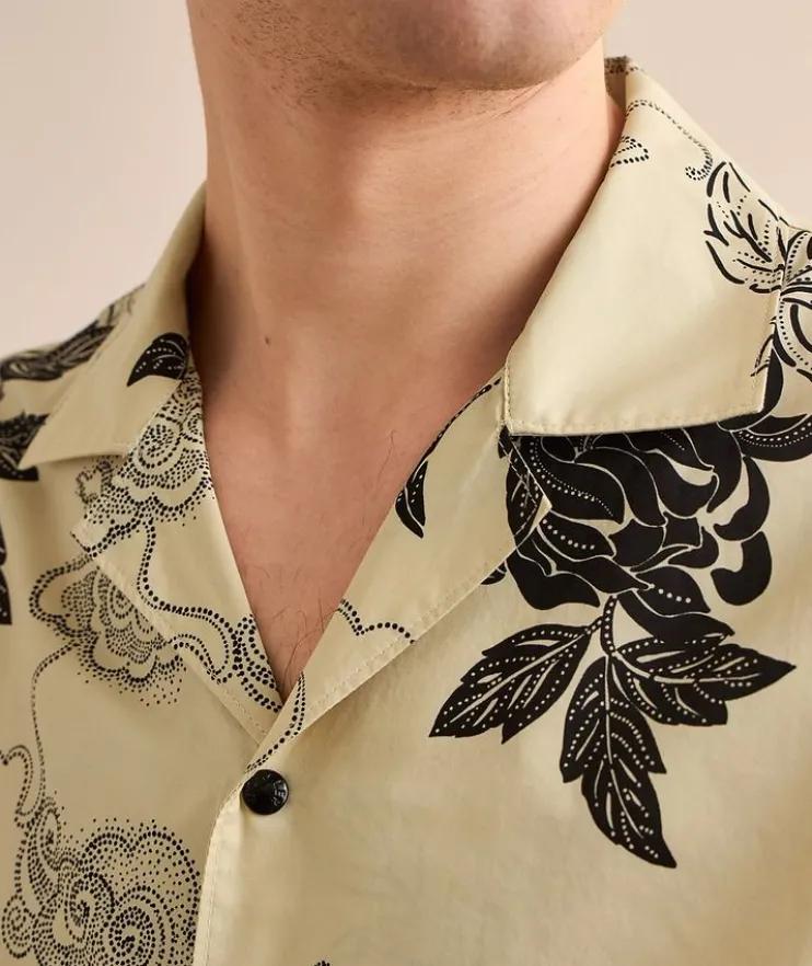 - A summertime essential, this lightweight cotton camp shirt boasts an artful floral print and snap-button details.