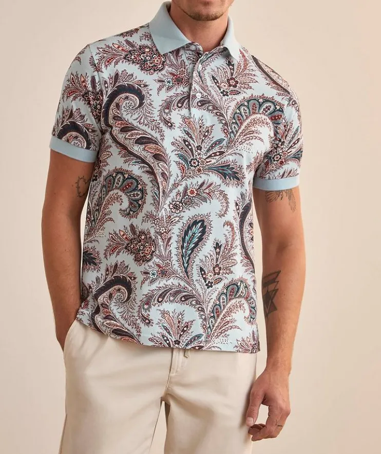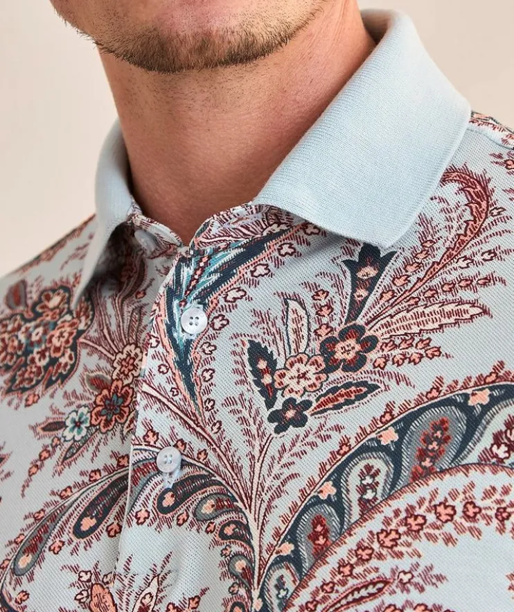 - This on-trend polo shirt is crafted from breathable cotton and showcases a colourful floral motif. Finished with ribbed trim for a refined look.