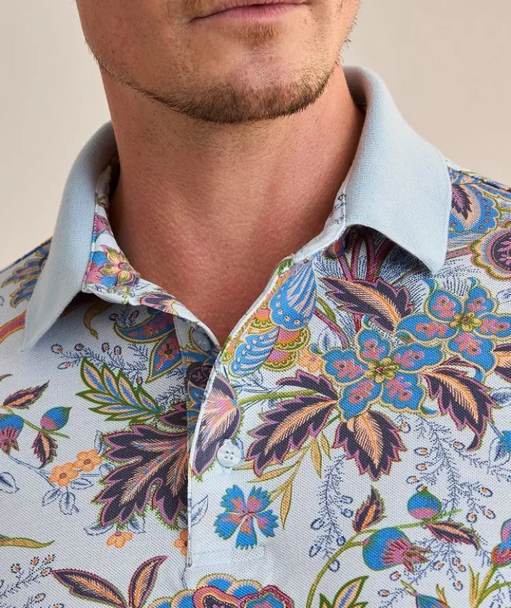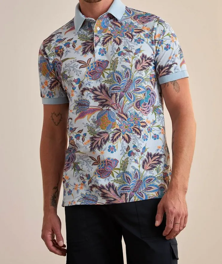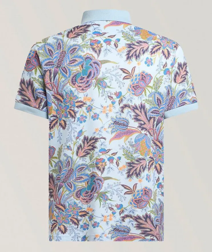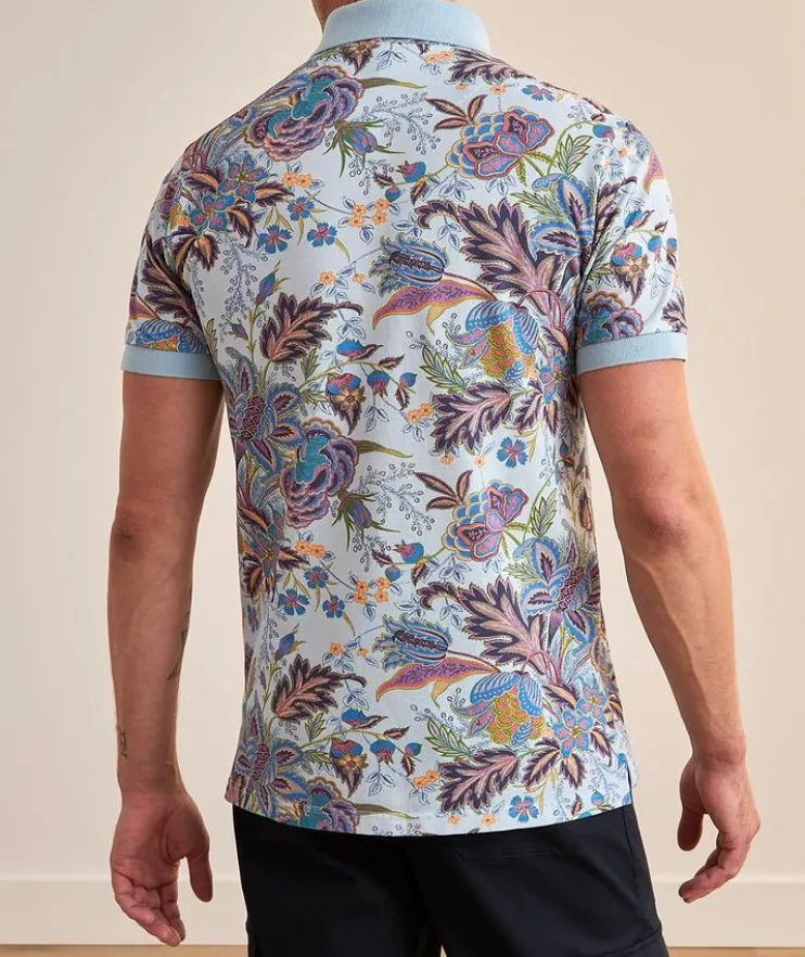 - This on-trend polo shirt is crafted from breathable cotton and showcases a colourful floral motif. Finished with ribbed trim for a refined look.