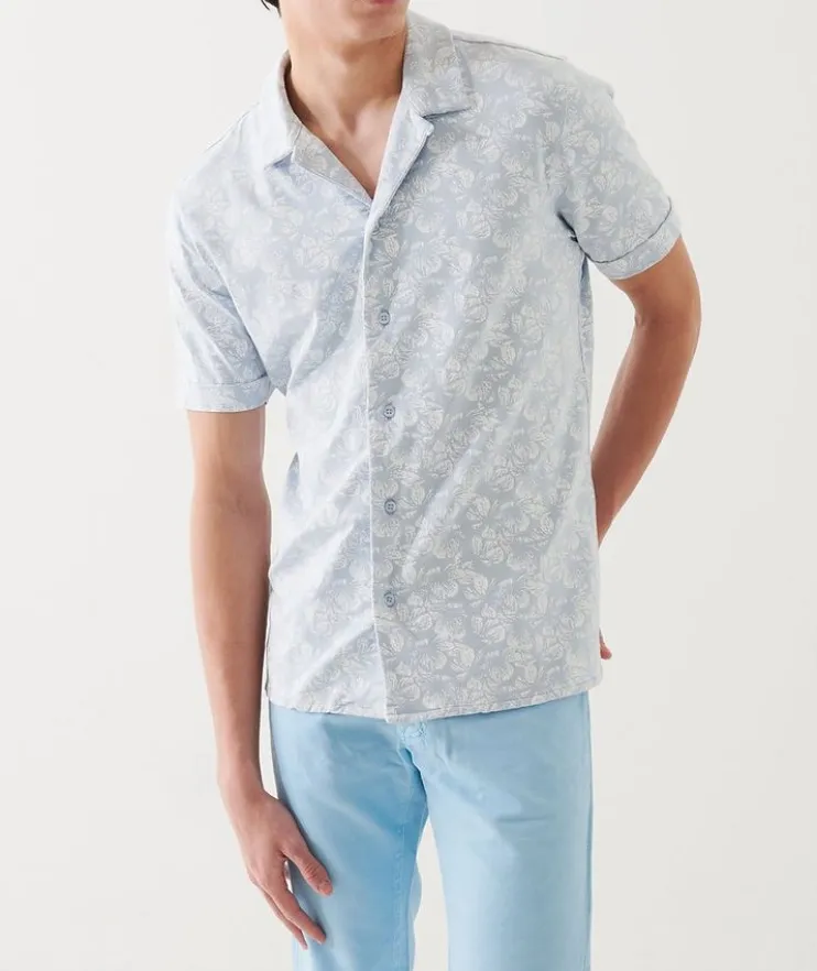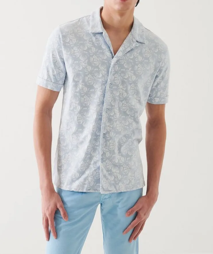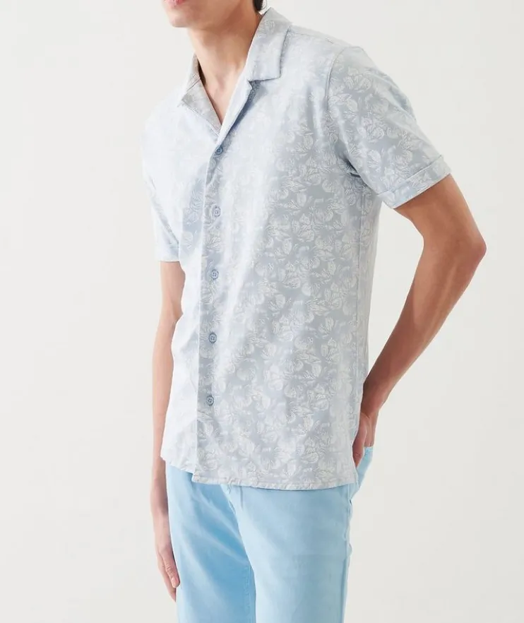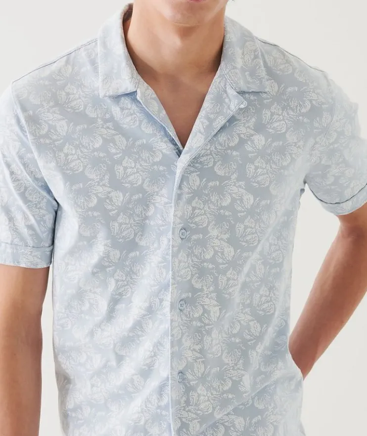 - Styled with an allover floral print for added texture and visual appeal, this easy to wear camp shirt is cut from soft, breathable cotton with a touch of stretch.
