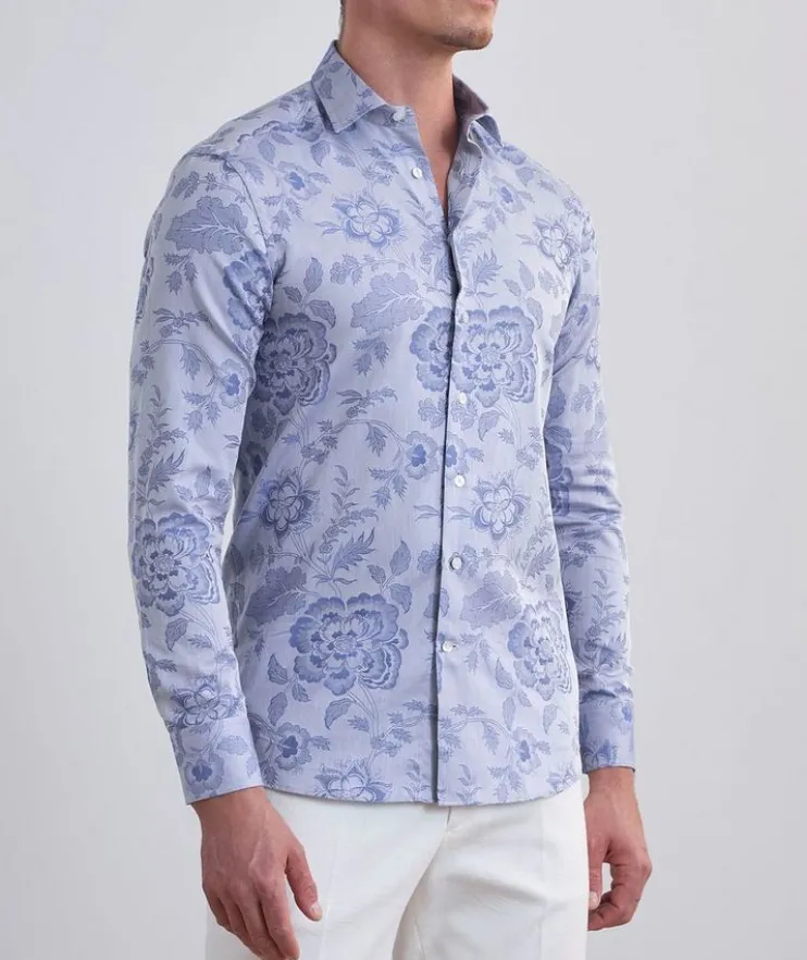 - Cut from soft, lightweight cotton and boasting a tonal floral print, this classic sport shirt adds a playful element to any ensemble.