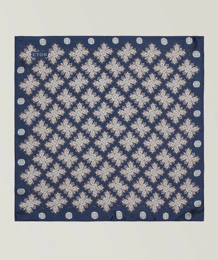 - Decorated pocket square in a 100% silk panama weave is printed with a hand-painted floral pattern for artful elegance.