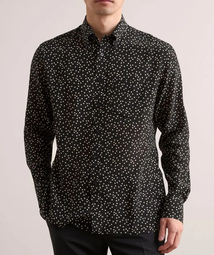 - This shirt has been crafted in a relaxed fit, designed to sit loosely against the body.