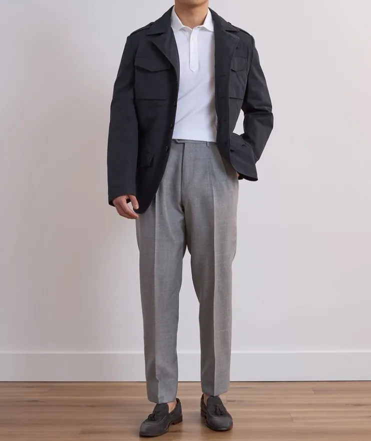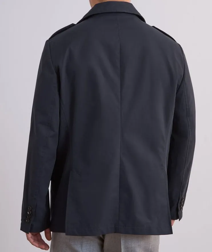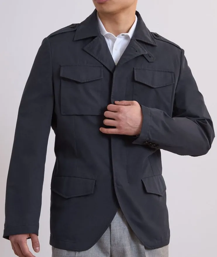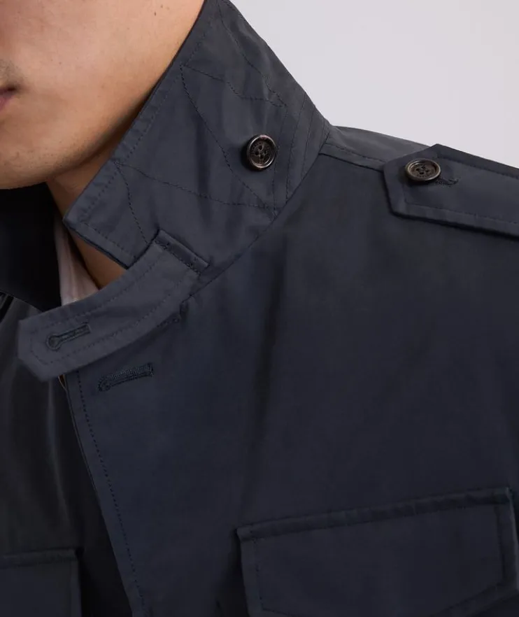 - Cultivate a lightweight outerwear wardrobe authentic to your personal sense of style with this military-inspired jacket. Advanced tailoring techniques provide extra attention and polish to the sophisticated button-front silhouette.