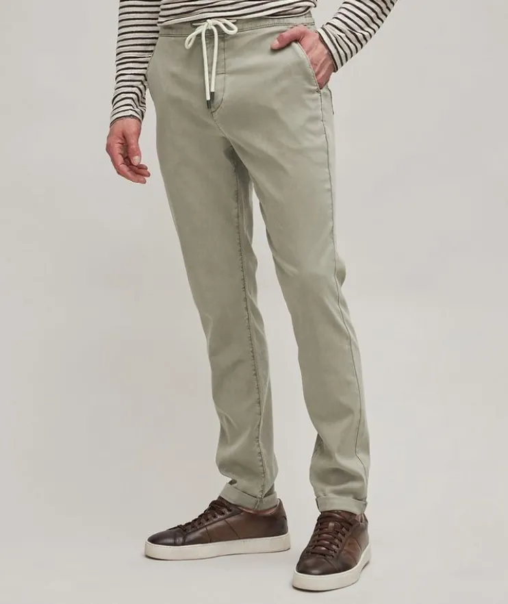 - These Fraser pants from Paige are built with comfort and style in mind. Crafted in super soft brushed cotton twill with stretch, this modern essential has an elasticated waist with an exterior drawstring for a relaxed feel. Finished with cuffed legs, pairs easily with any tee, flannel, or button down in your closet.