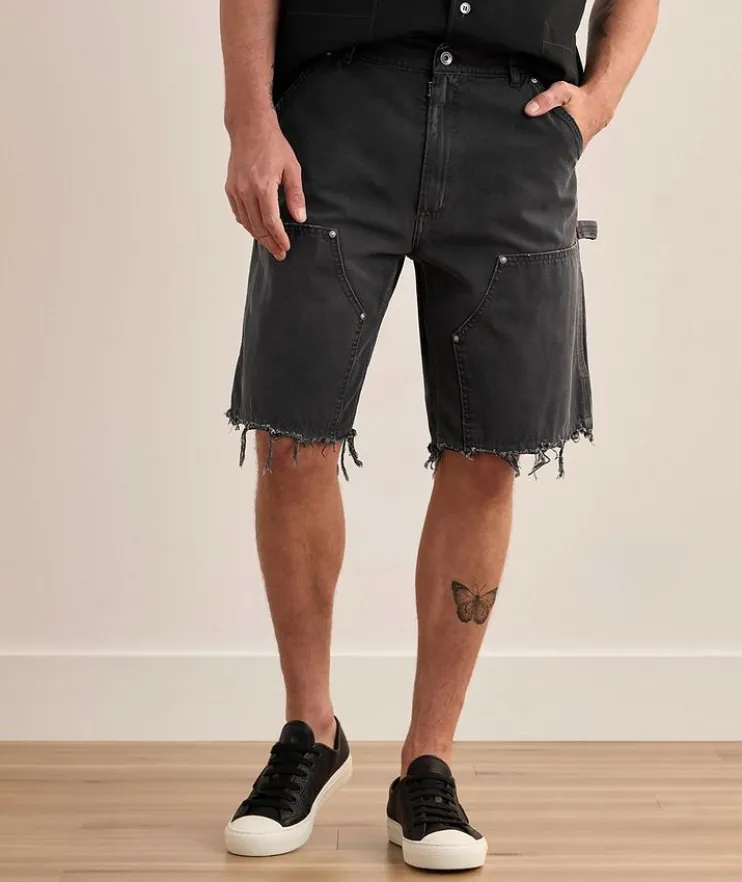 - Bringing urban appeal with metropolitan style, these wide-leg shorts are topped with metal rivets and finished in premium cotton with frayed hems for a modern look.