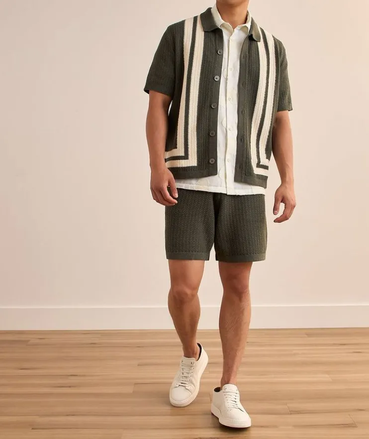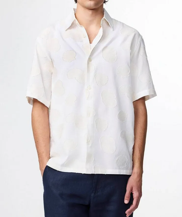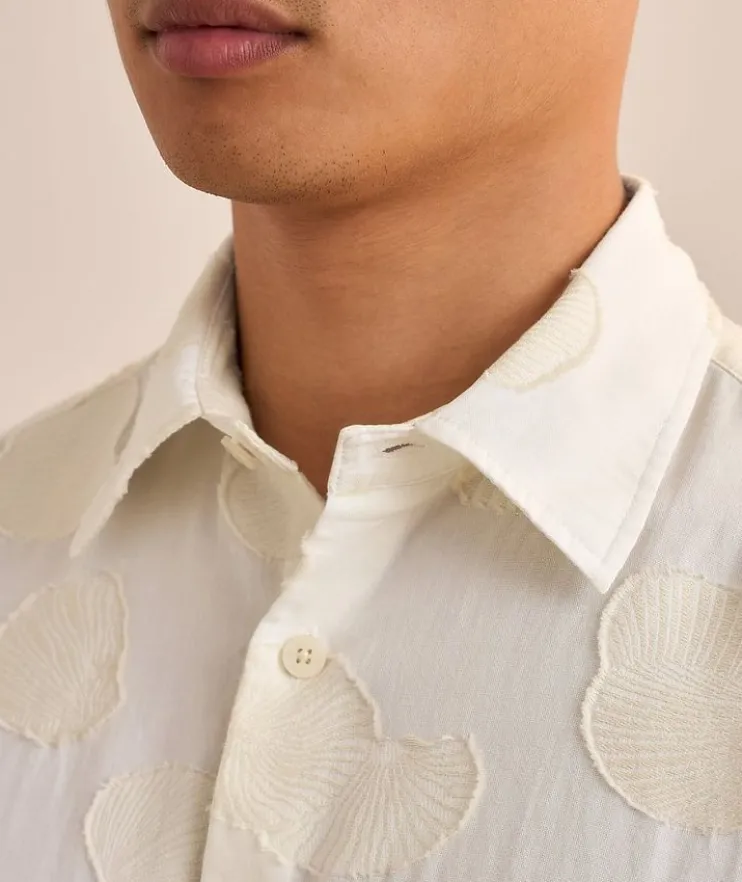 - Fashioned in premium organic cotton with a shirt-style collar and button closure, this casual shirt is elevated with a striking fil coupé jacquard pattern for effortless style on every occasion.