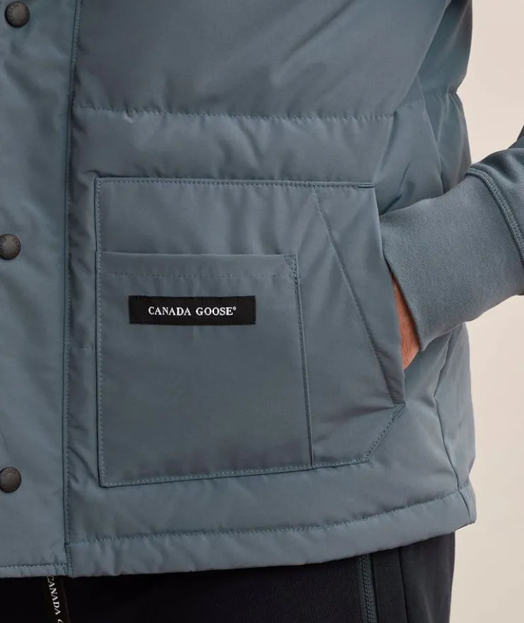 - For the layering enthusiast, Canada Goose’s Freestyle Crew Vest is notable for its versatile design, combining lightweight down insulation with a sleek, urban silhouette, making it ideal for layering in both casual and active settings.