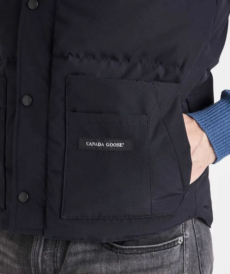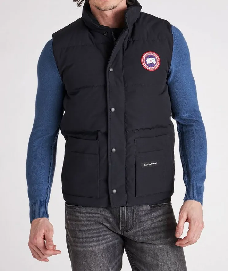 - This timeless quilted vest from Canada Goose is insulated with 625 fill-power duck down for exceptional warmth. The sleek design is equipped with a stand collar, concealed closure and a longer back hem to further protect from the cold. It’s ideal for transitional dressing or lightweight winter layering.