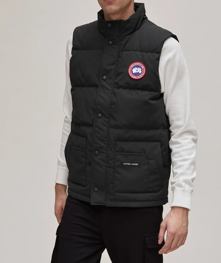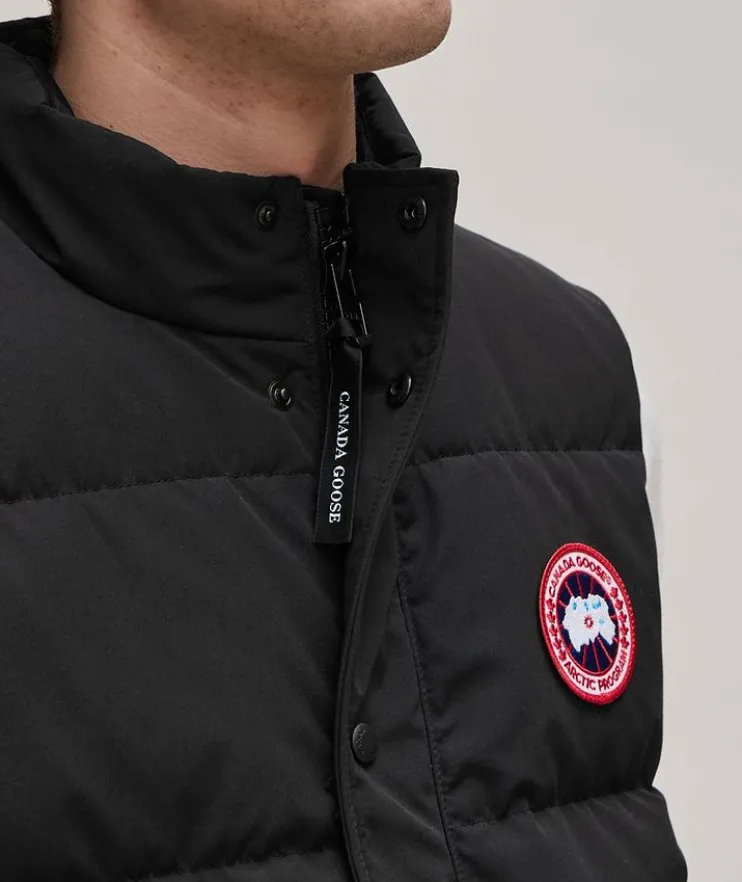 - This timeless quilted vest from Canada Goose is insulated with 625 fill-power duck down for exceptional warmth. The sleek design is equipped with a stand collar, concealed closure and a longer back hem to further protect from the cold. It’s ideal for transitional dressing or lightweight winter layering.