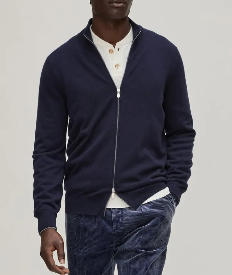 - This classic full-zip cardigan from Brunello Cucinelli is a timeless addition to your knitwear collection. It’s exquisitely fashioned in Italy from pure sumptuous cashmere in a soft and breathable finish. Team it with t-shirts, streamlined jeans and leather boots for a casually refined weekend look.
