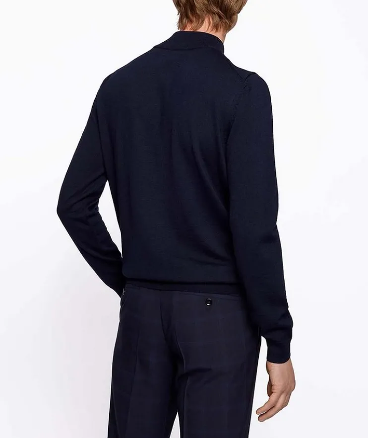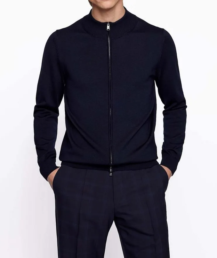 - A versatile cardigan by BOSS Menswear. Offered in a regular fit for an easy silhouette, this zip-up cardigan is crafted in virgin wool for natural comfort and breathability. The inner collar is detailed with a signature stripe.