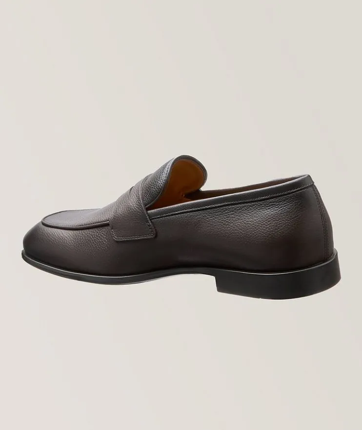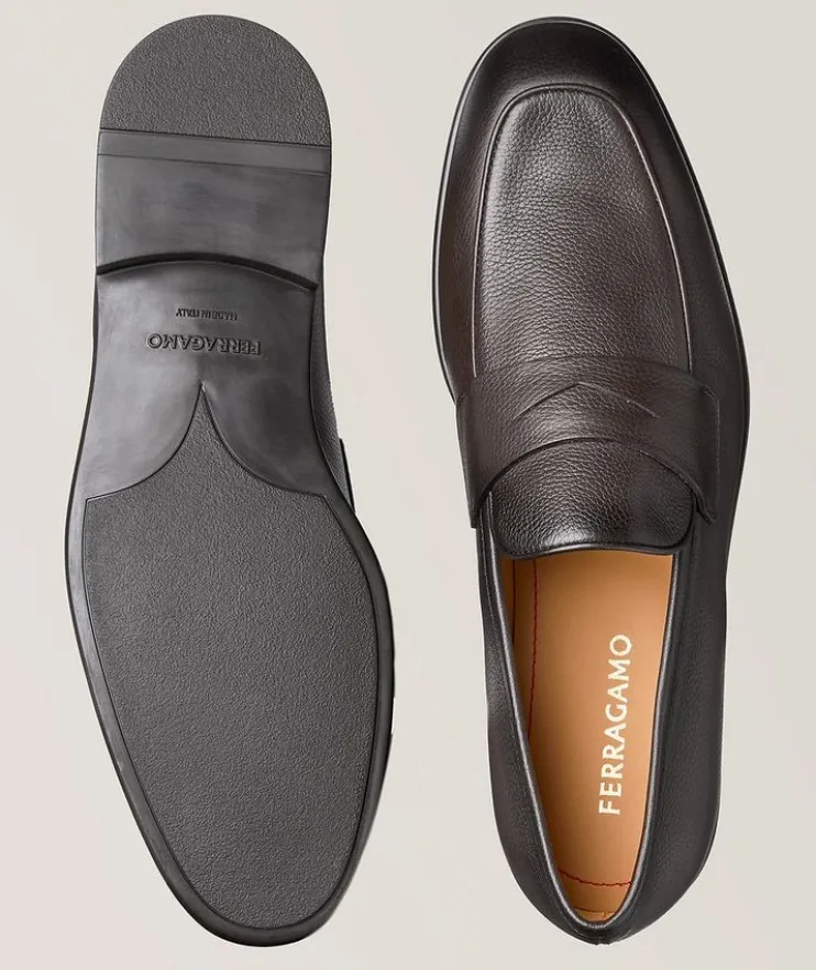- A nod to classic style, this artisanally-treated penny loafer works day or night. Accentuated by a handcrafted double seam and a beautifully shaped strap across the instep, this leather slip-on is finished with a durable sole with stitch reinforcement. For a custom fit with your loafer, choose a full size down from your sneaker size to allow the snug leather to conform to your foot and gradually stretch to your size for a personalized fit over time.