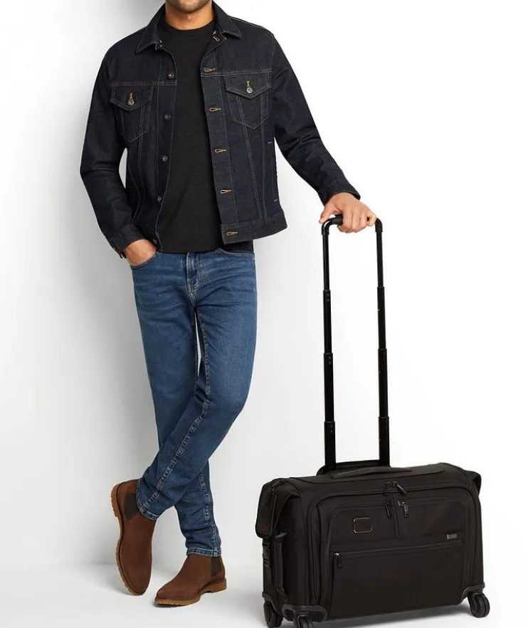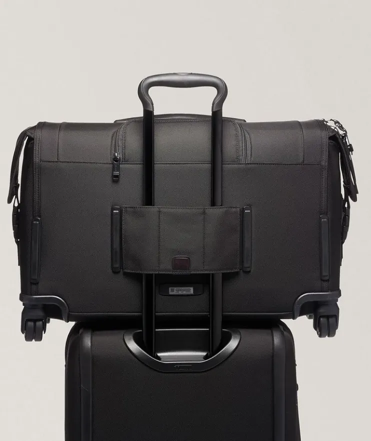 - Tumi elevates your travel and business experience with the label’s design innovation, engineering, functionality and performance. Indispensable for the frequent traveler, this carry-on garment bag features a 4-wheel design that allows you to easily roll the bag down a narrow airplane aisle and features a built-in TSA combination lock to keep you secured.