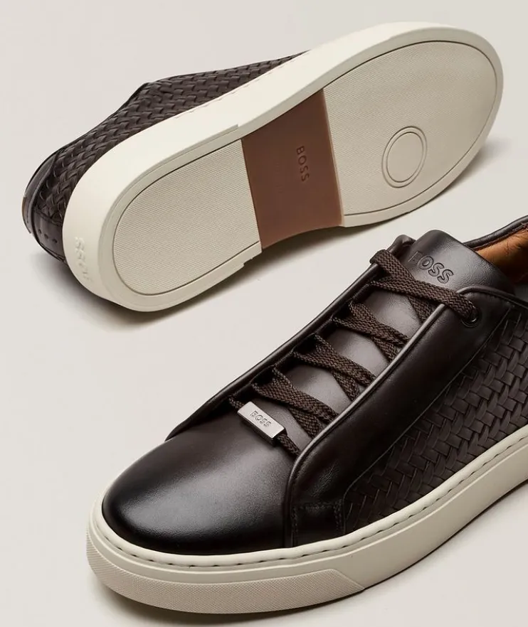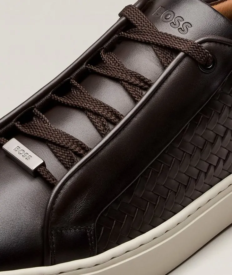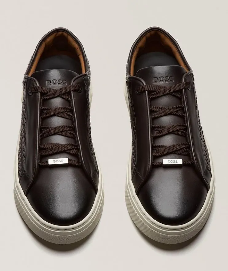 - Expertly crafted in Italy, these sleek tennis sneakers feature a woven design and leather finish for a smart, modern look.