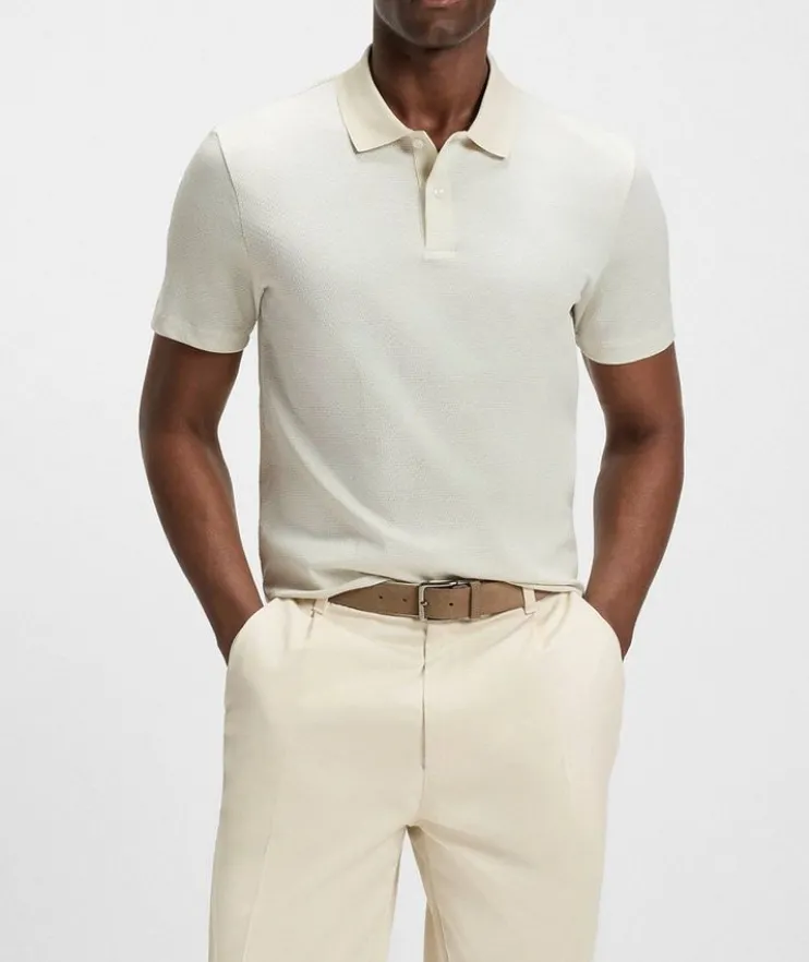 - Cut to a straight fit, this sophisticated polo shirt is made in mercerized cotton with an extra-soft feel and geometric jacquard detailing.