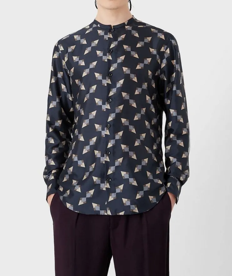 - This silk dress shirt from Giorgio Armani embodies the essence of their Cruise Collection, through subtle details and contrasting prints.