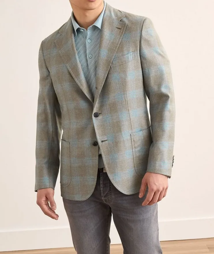 - Fashioned from a luxurious blend of cashmere and silk with a check finish, this handsome sport jacket elevates any outfit. The sleeves of this garment are unfinished. Alterations are needed for sleeve length adjustment and button attachment.