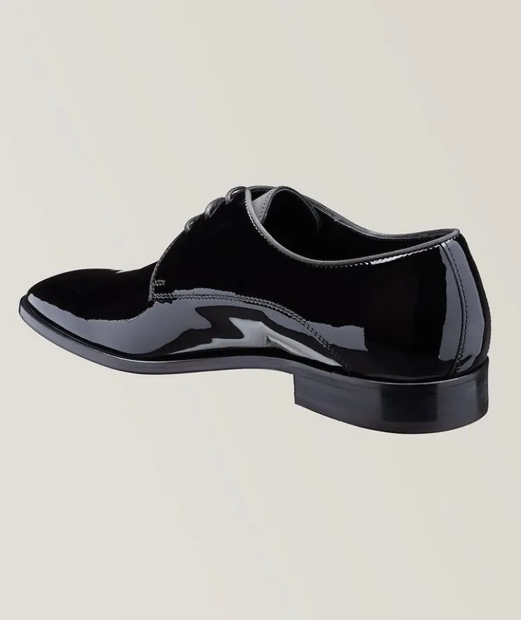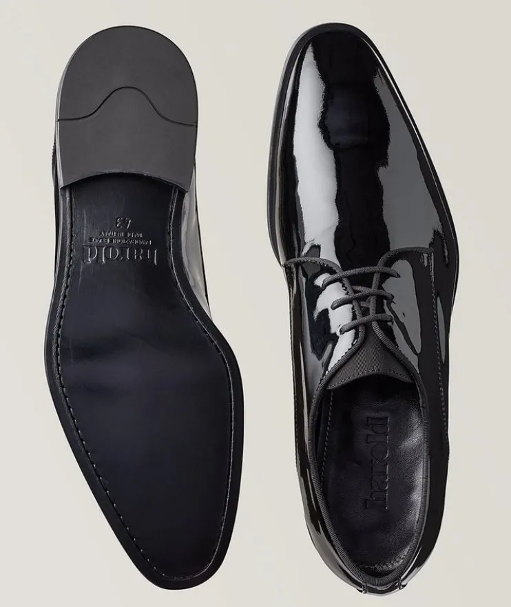 - Shoes can make or break your outfit, so make it with this Derby by HAROLD. The Italian-crafted pair is fashioned from a glossy patent leather upper, offering a glamorous take on the traditional style. Finely appointed with a grosgrain trim along the tongue and shoe opening, and a rubber island-equipped stacked heel, don this Derby in full confidence that your personal style, is great style.