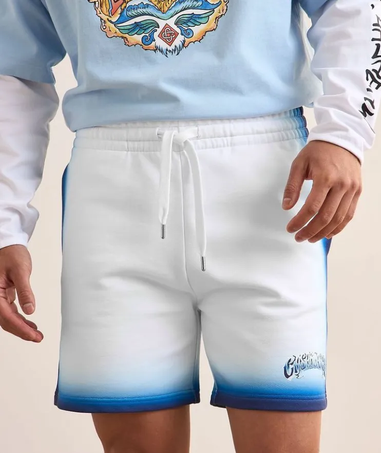 - These sportswear-inspired sweatshorts are crafted from organic cotton and feature the brand’s seasonal faded design. Finished with a hand-drawn typography logo, inspired by the gothic typeface used in tattoos.