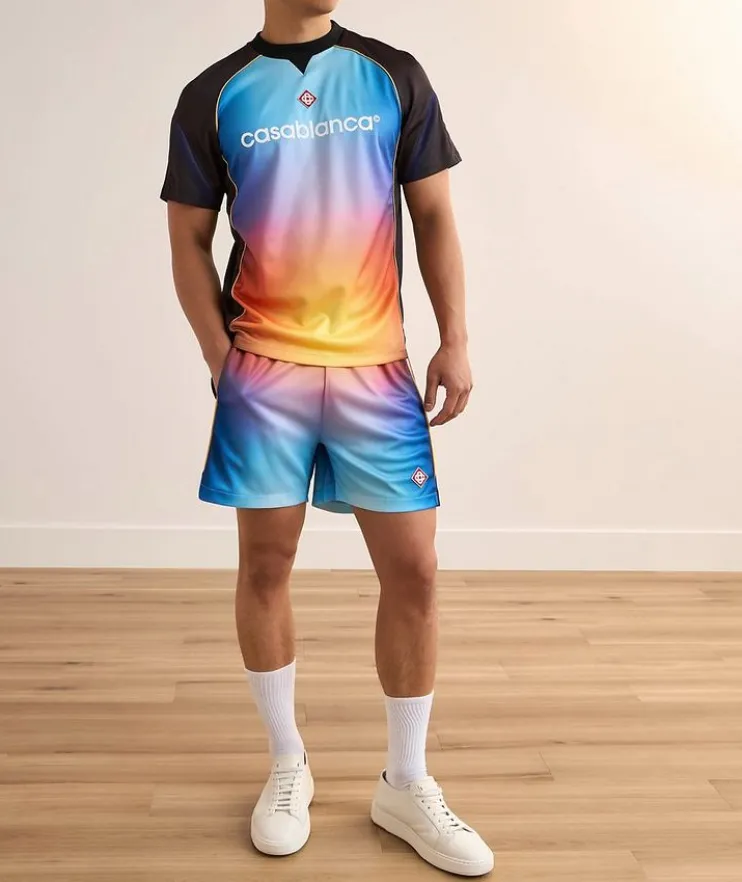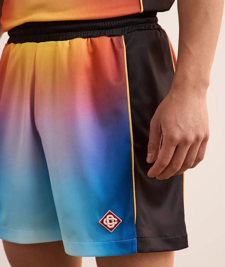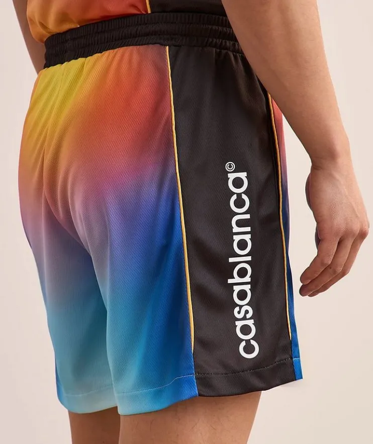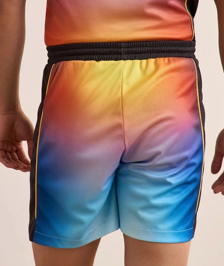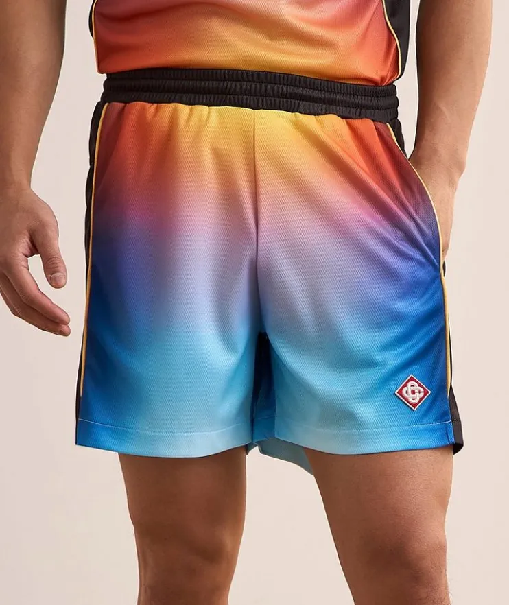 - A contemporary piece for off-duty styling, these athetlic-inspired mesh shorts feature a colourful gradient design with logo details and a comfortable elasticated waistband.
