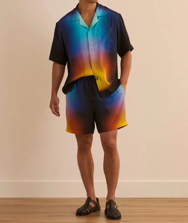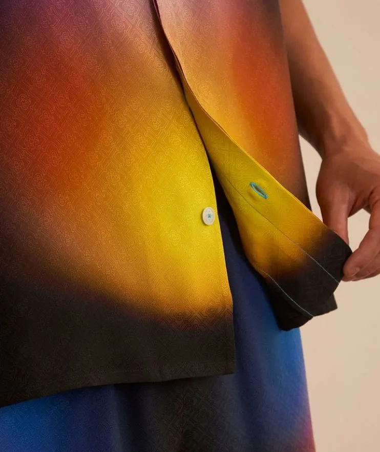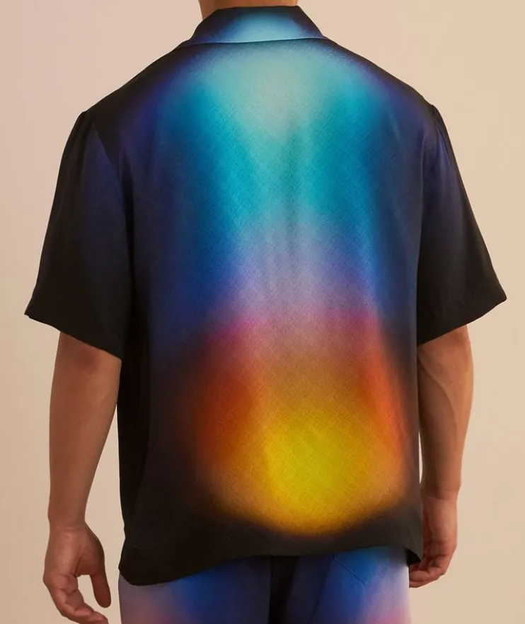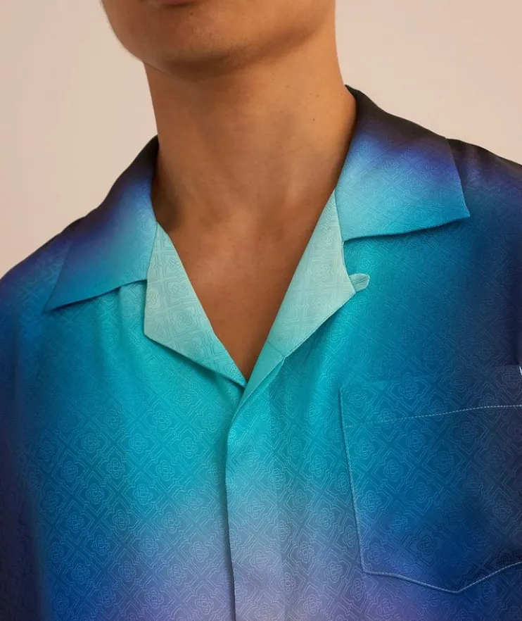 - Cut from smooth, flowy silk with a logo print and colourful gradient finish, this short-sleeved shirt lends a refined, artful touch to any ensemnle.