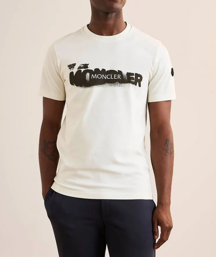 - Boasting a graffiti-inspired logo print, this laidback crewneck T-shirt is crafted from breathable cotton. An essential for weekend styling, this top easily layers for versatile styling year-round.