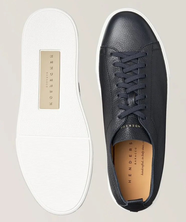 - These Henderson for Harry Rosen sneakers are a contemporary take on the classic minimal low top sneaker. Crafted in Italy from supple deerskin, the Byron features a pebbled deerskin upper which makes the pair a versatile accessory to pair with refined and casual outfits alike. Pair the modern style with a variety of casual and formal ensembles for a cool, ready-for-anything look. These shoes have been crafted with a wide fit, we recommend selecting a half size down.