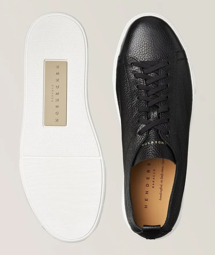 - These Henderson for Harry Rosen sneakers are a contemporary take on the classic minimal low top sneaker. Crafted in Italy from supple deerskin, the Byron features a pebbled deerskin upper which makes the pair a versatile accessory to pair with refined and casual outfits alike. Pair the modern style with a variety of casual and formal ensembles for a cool, ready-for-anything look.