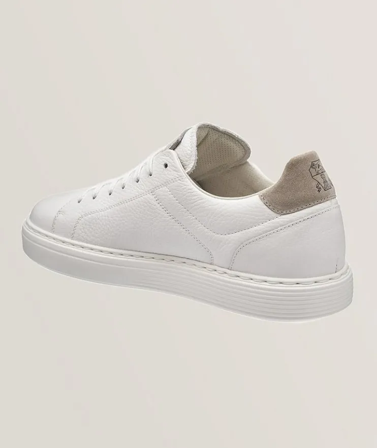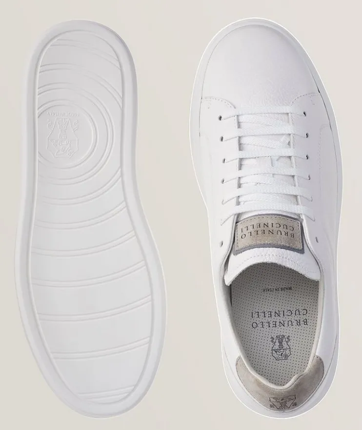 - Brunello Cucinelli creates versatile sneakers for the modern man looking to kick off the season and refine his sportwear collection. Crafted in Italy, this grained calfskin pair provides extra comfort all day with its lightweight outsole. Suede detail adds textured contrast, making it the perfect pair to wear refined and casual outfits alike.