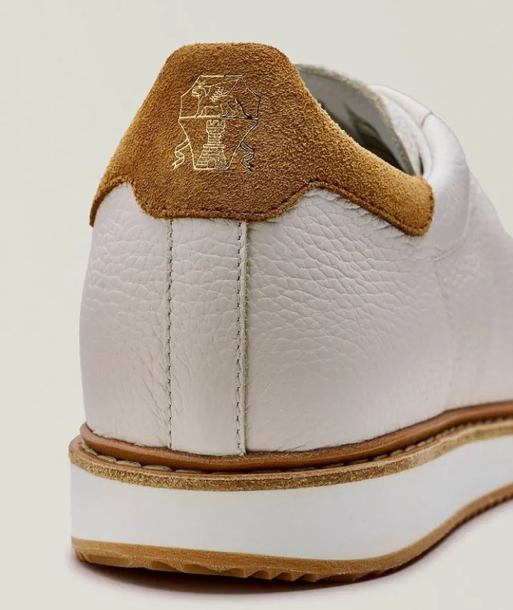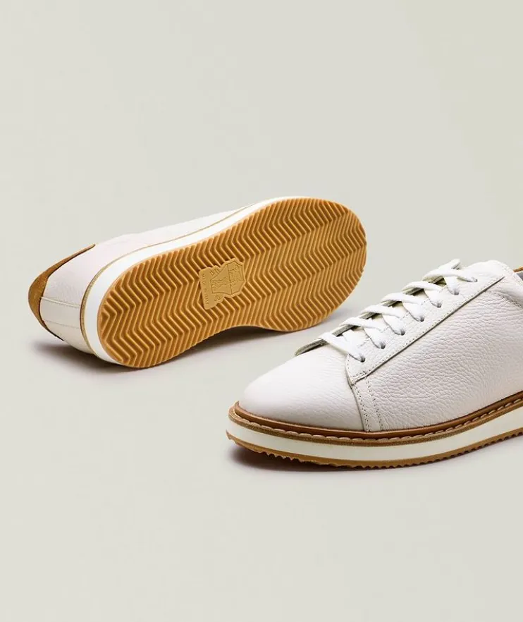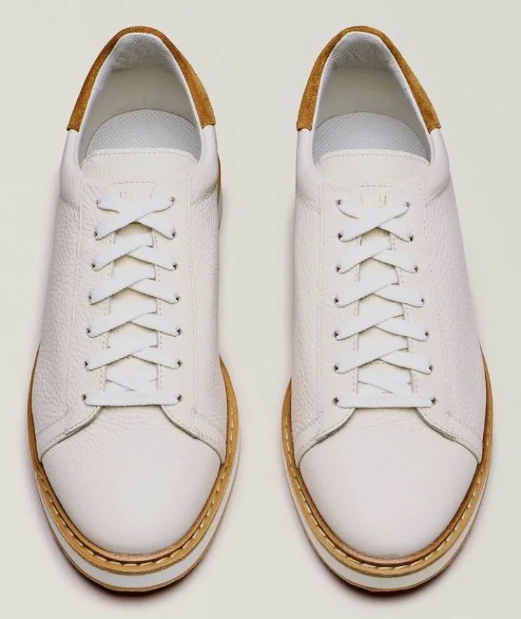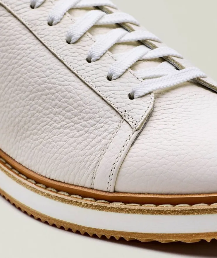 - Refined materials and artisanal workmanship enhance these grained leather sneakers with suede accents. Perfect for work or weekend, these comfortable low-tops are finished with soft leather lining and a lightweight rubber sole.