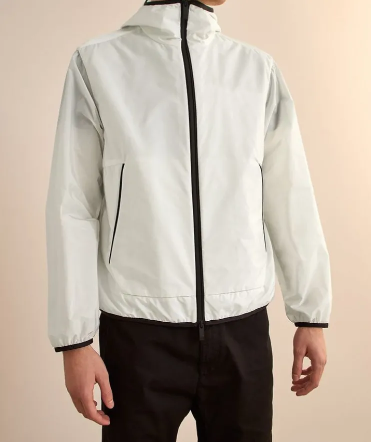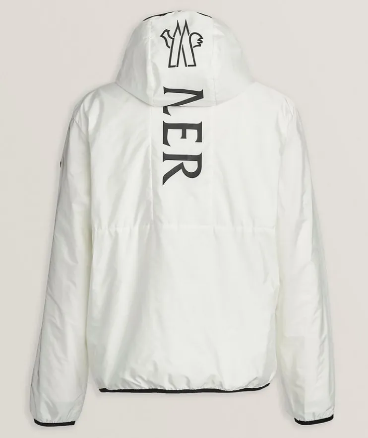 - This contemporary windbreaker jacket is designed for milder weather from technical nylon with a water-repellent finish and reflective logo detailing at the back.