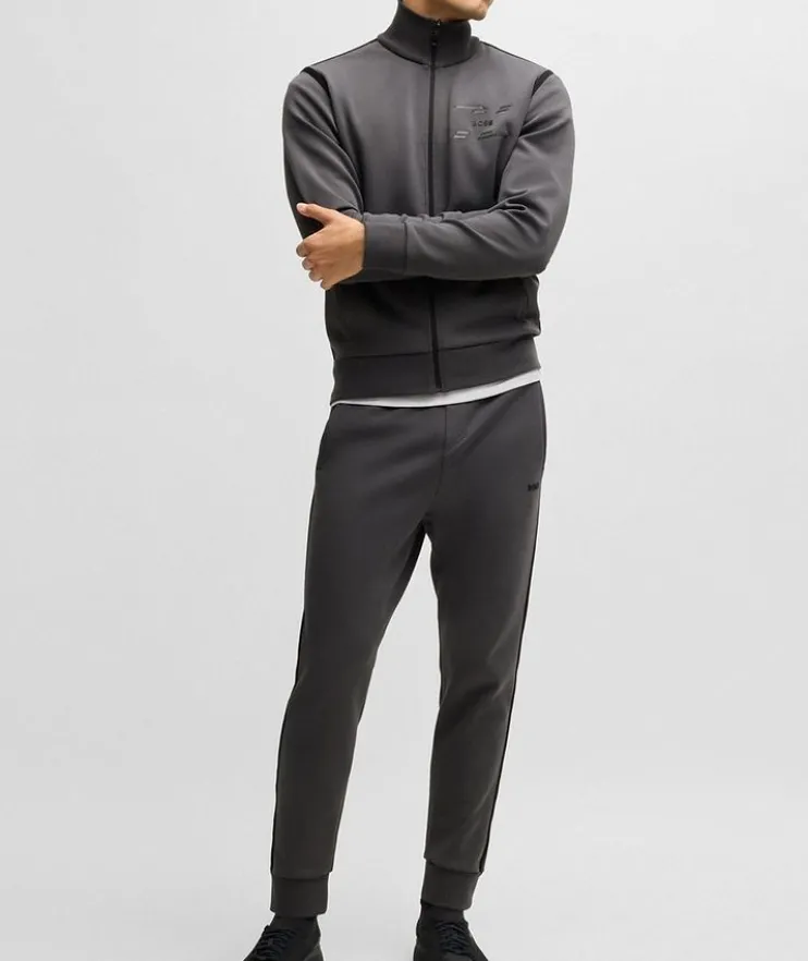 - Regular-fit tracksuit bottoms by BOSS Menswear in a cotton-interlock blend with advanced stretch for comfort. Detailed with understated branding and tape trims.