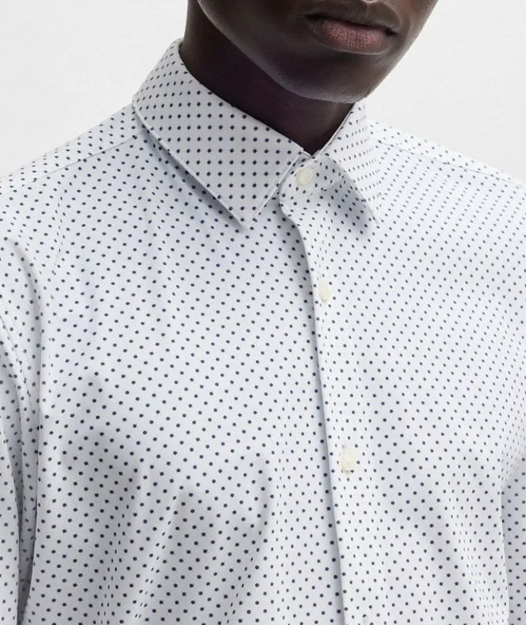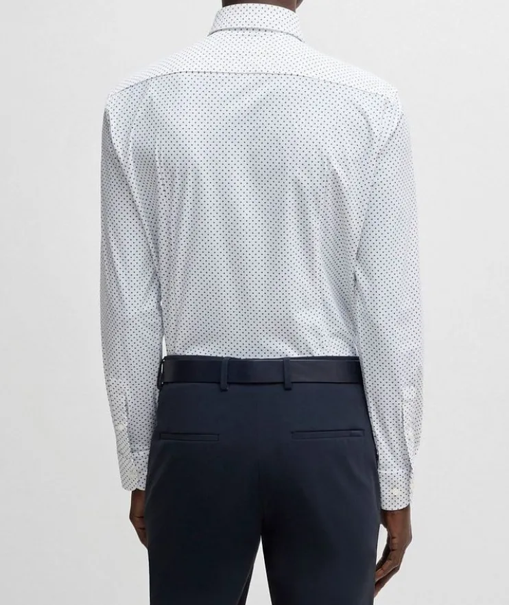 - Crafted from soft and stretchable jersey, this classic shirt features a dot motif and is tailored to a defined fit.