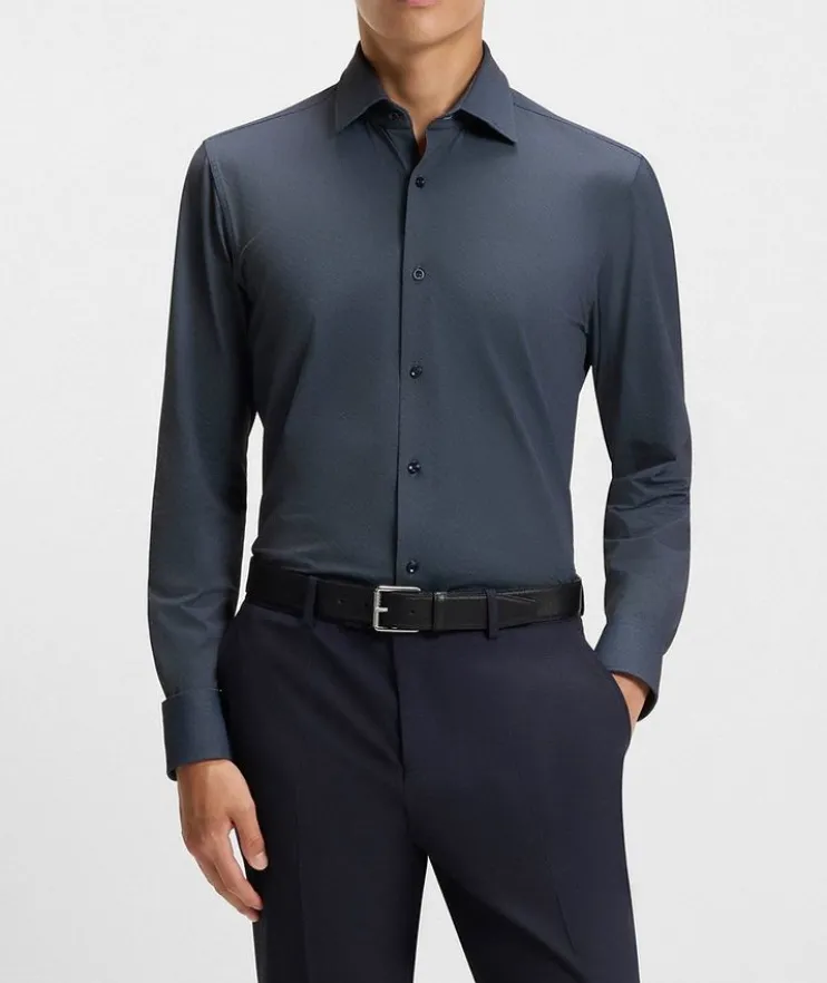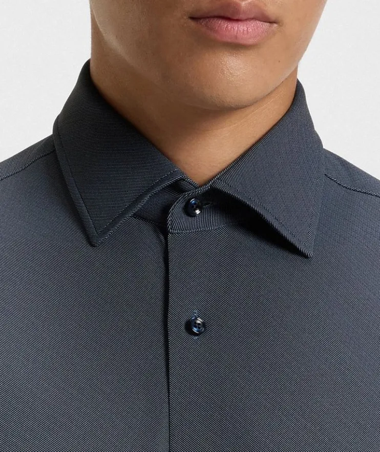 - Boasting a twill-effect print, this versatile dress shirt is cut in refined fit from structured Italian-made fabric that offers moisture management and generous stretch for all day comfort.