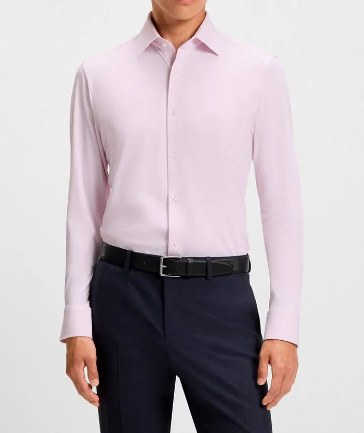 - An essential for the modern businessman, this classic dress shirt is constructed in slim-fitting silhouette from performance-stretch fabric with moisture management.