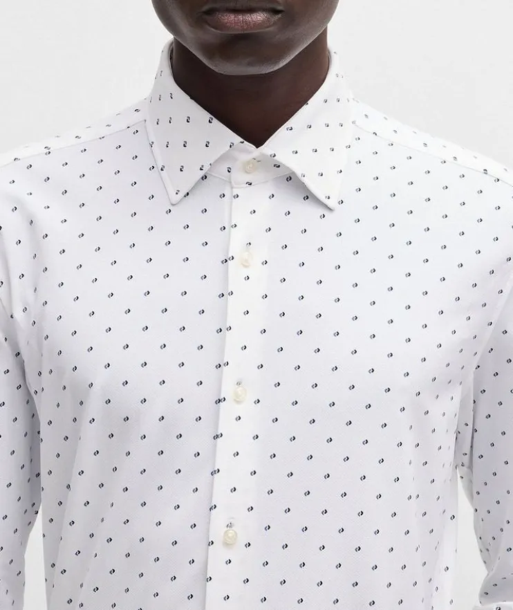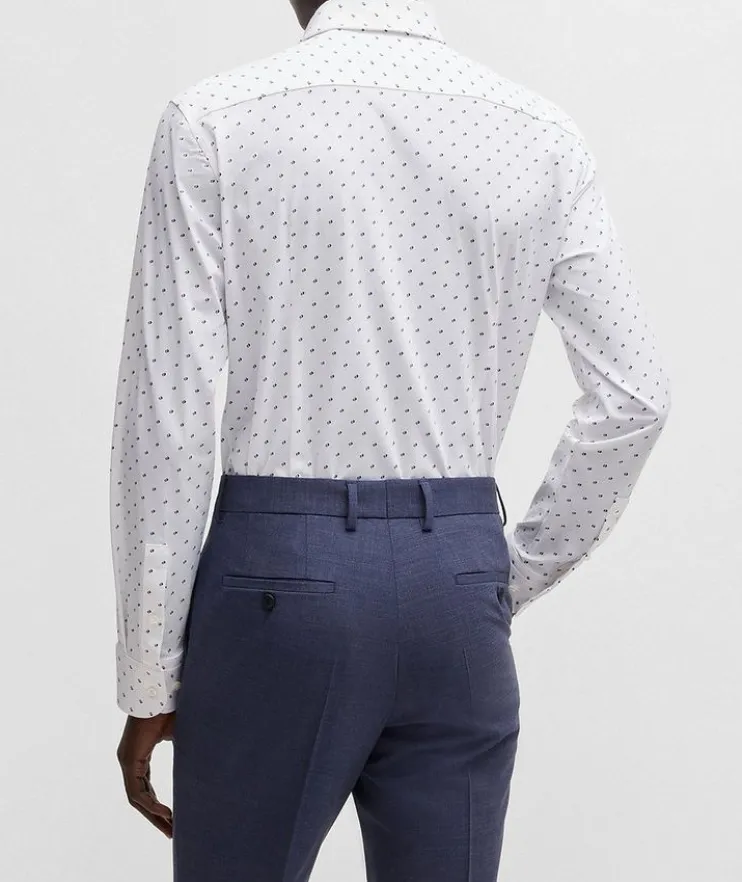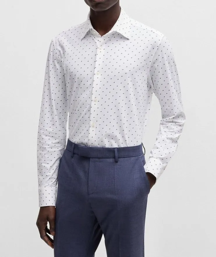 - A super-stretch shirt with a contemporary print by BOSS Menswear. This long-sleeved design is tailored to a clean slim fit.