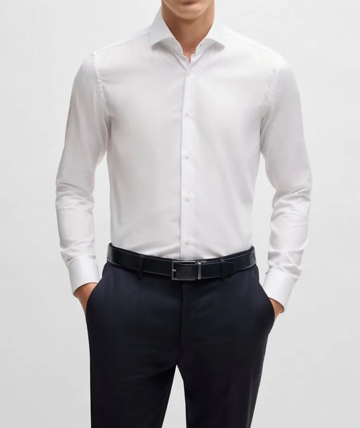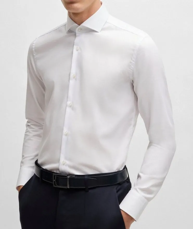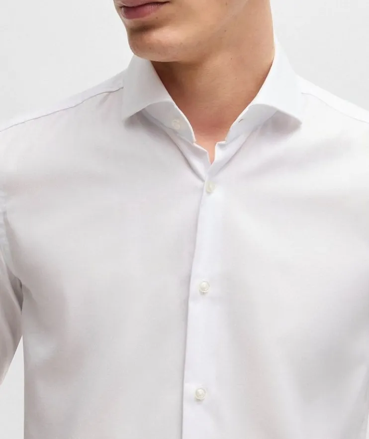 - A refined shirt tailored to a modern slim fit by BOSS Menswear. This design is crafted in soft cotton woven with a detailed structure.