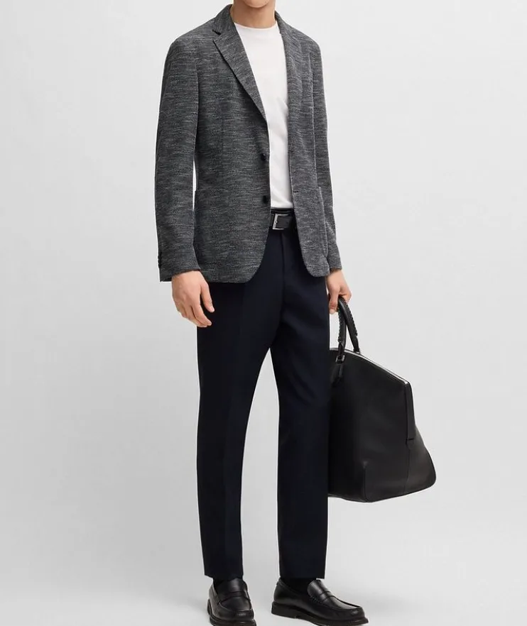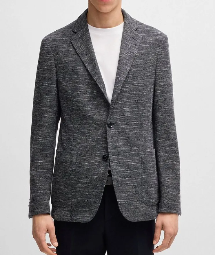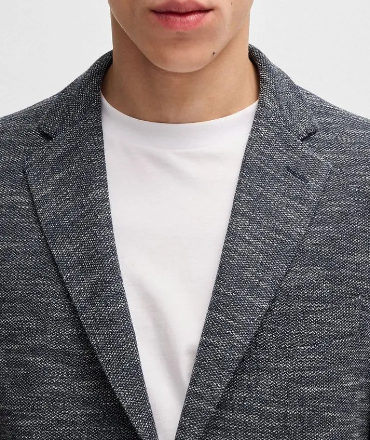 - A suit jacket by BOSS Menswear, cut to a defined fit Blended with cotton and stretch, this single-breasted design carries a subtle micro pattern.