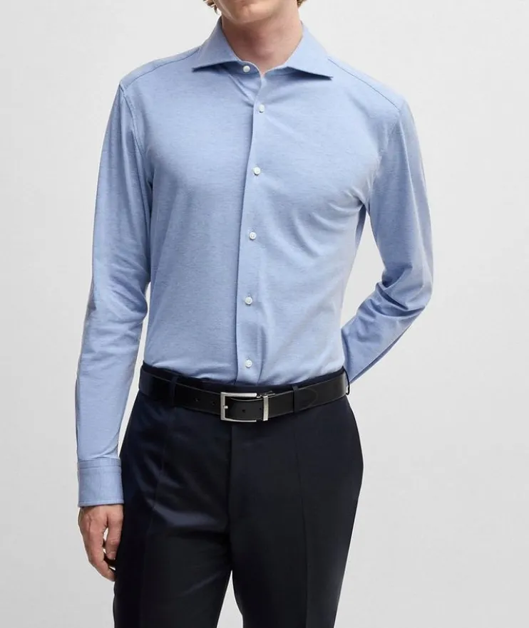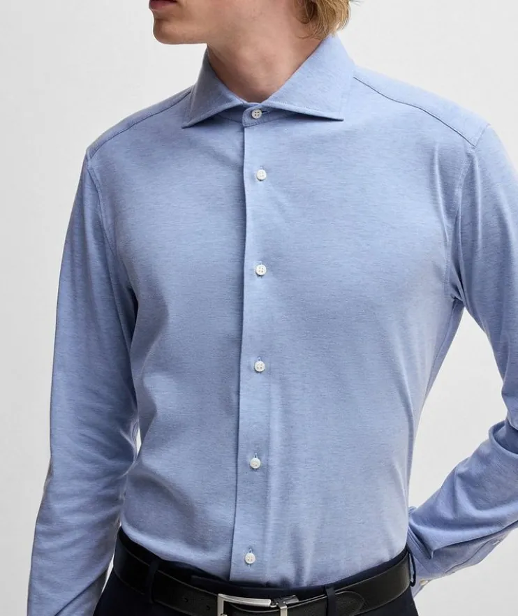 - An advanced shirt in a defined fit by BOSS Menswear. This piece is crafted in a cotton blend with generous stretch for comfort and performance.