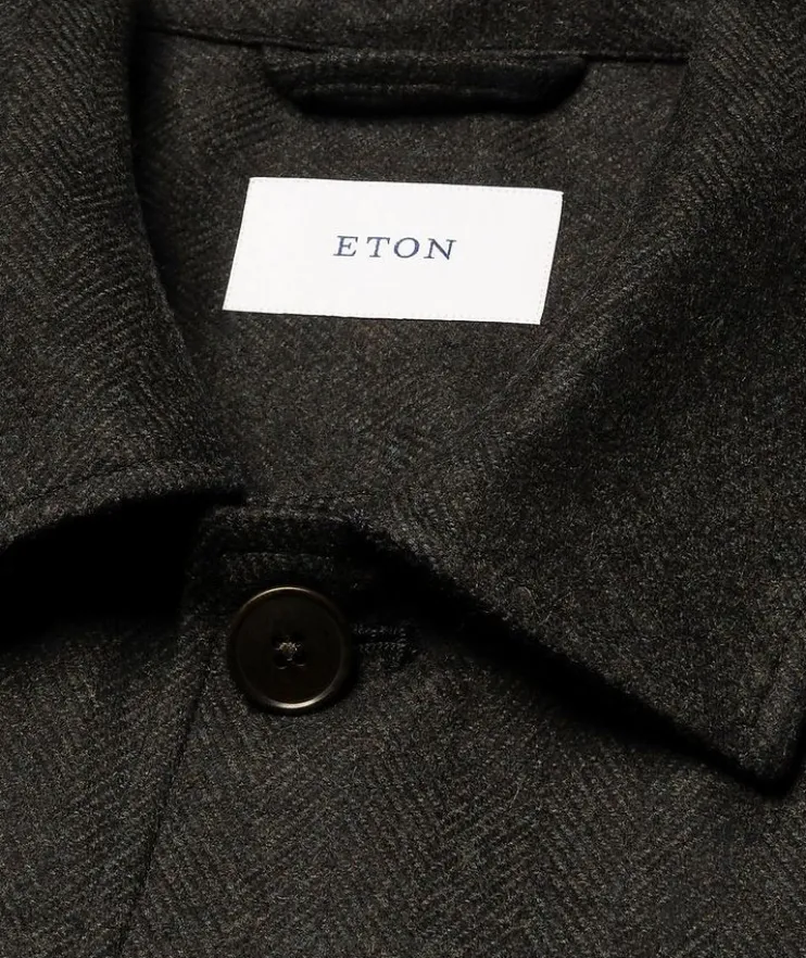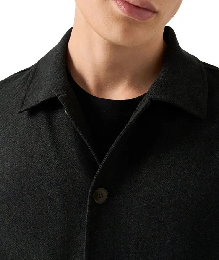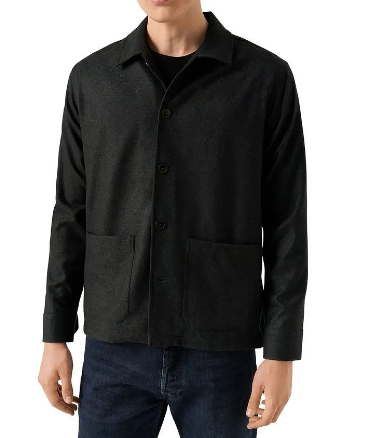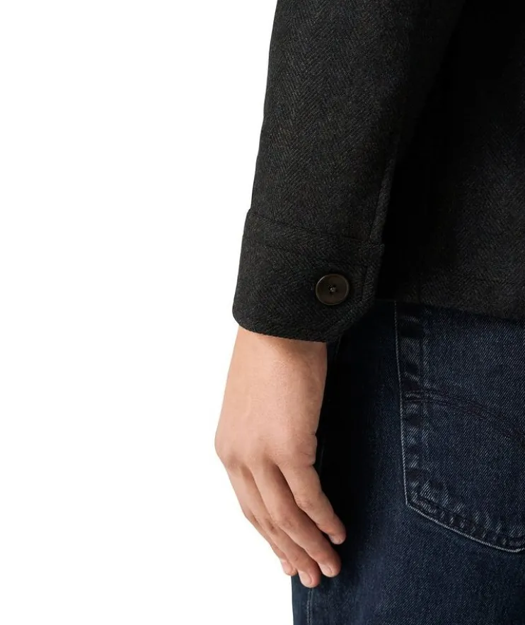 - Tailored for a fresh silhouette with patch pockets and a button-front closure, this herringbone chore jacket is woven in a luxurious blend of wool and cashmere for a breathable, natural texture and structured look.