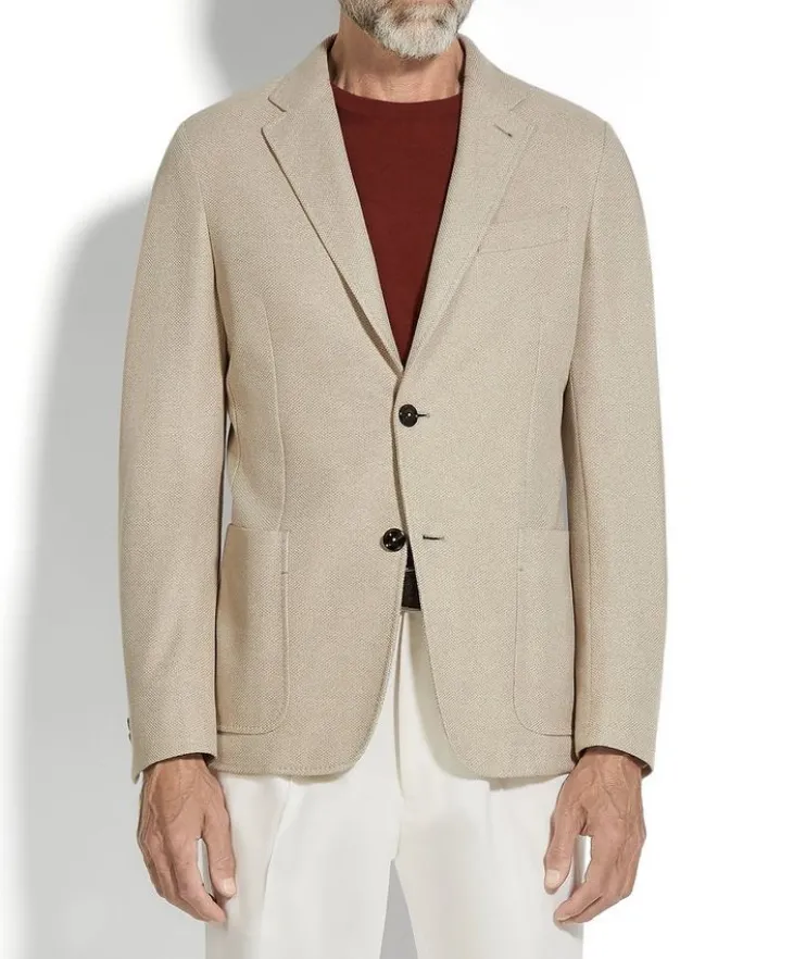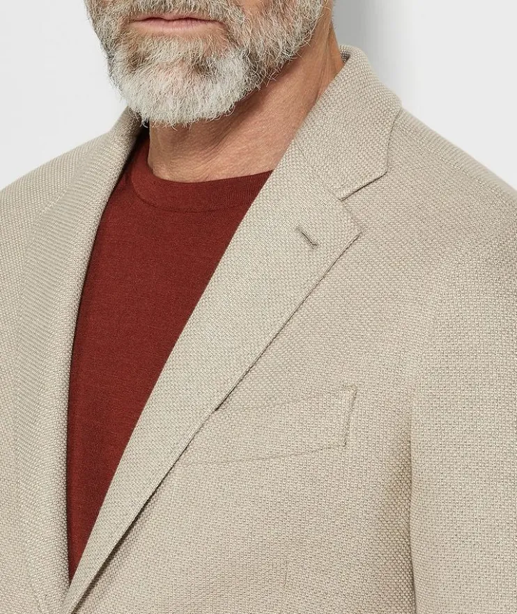 - Showcasing Zegna’s expertise in innovative materials, this jacket’s lightweight material is enhanced with a honeycomb texture. The slim fit jacket can be folded up for effortless style wherever your travels take you.